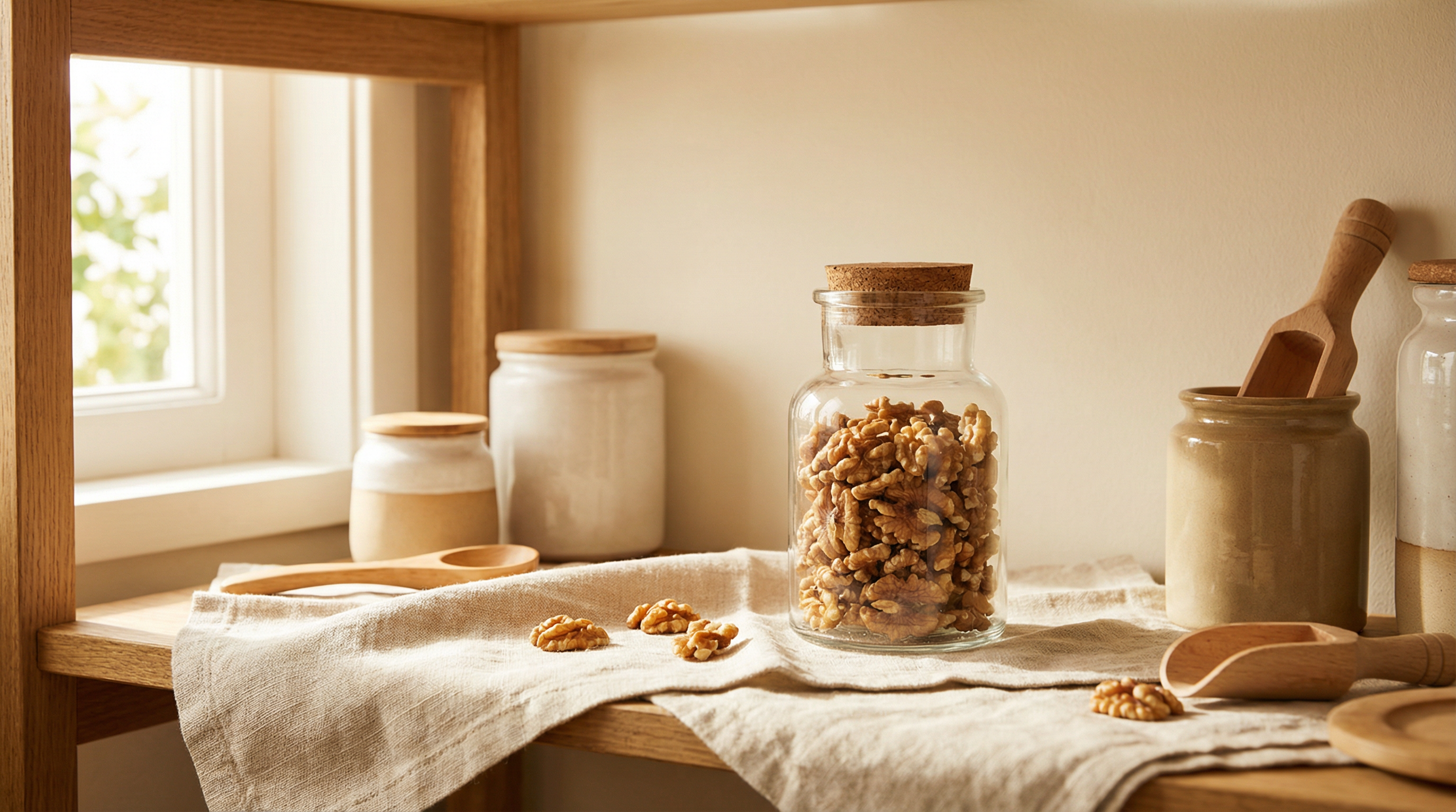 Buzdolabının sebzelik bölümü tercih edilmelidir çünkü buradaki sıcaklık genellikle 2–4 °C civarındadır ve nem seviyesi diğer raflara göre daha dengeli tutulur. Kavanozu doldurmadan önce cevizlerin tamamen kuru olduğundan emin olun — tek bir nemli parça bile küflenmeyi başlatabilir. Kapağı her açışınızda kavanozun ağzını hızlıca kapatmak da oksijene maruz kalma süresini kısaltır.