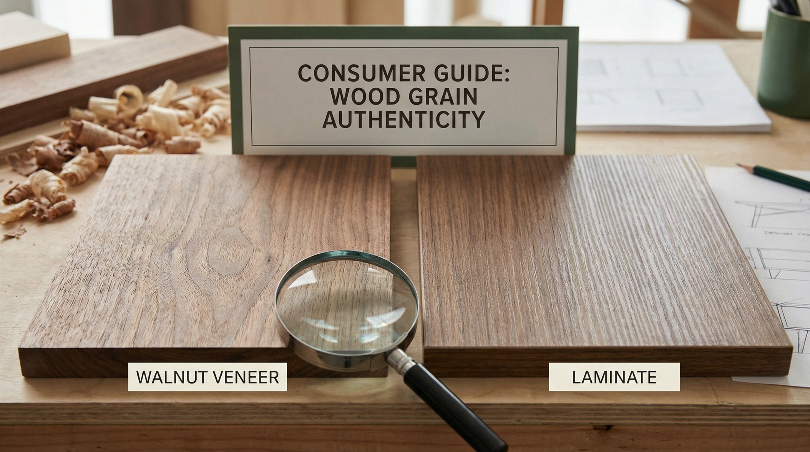 Mobilya mağazalarında "Ceviz Görünümlü" etiketiyle satılan ürünlerin çoğu aslında plastik bazlı baskılardır. Gerçek ahşap kaplama (papel) ile yapay baskıyı ayırt etmenin 3 profesyonel yolu vardır — ve bu yöntemleri öğrendikten sonra bir daha asla kandırılmazsınız.